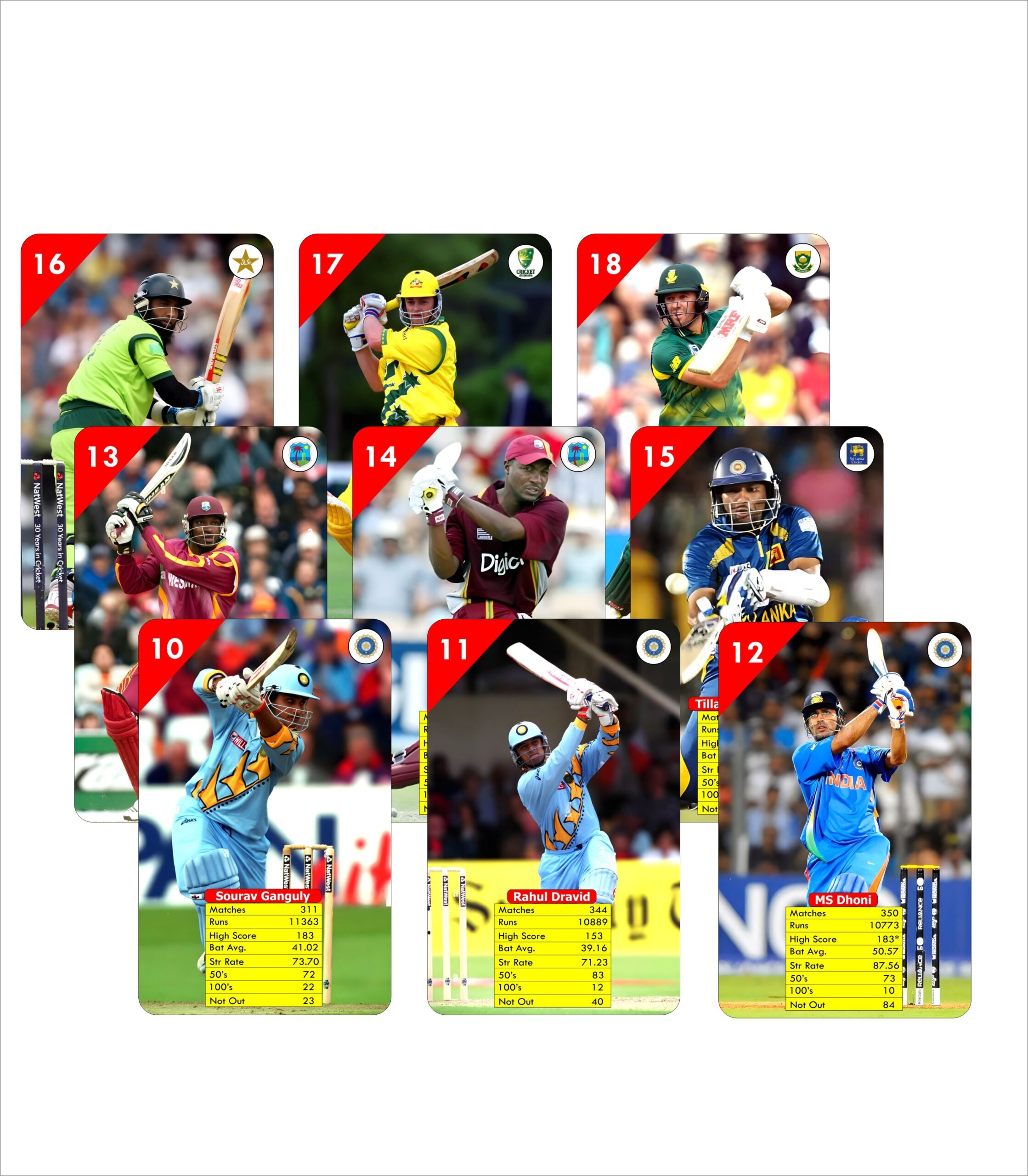 Own the complete Top 100 ODI Batsmen & Top 100 ODI Bowlers Cricket Cards Combo by MCR Creations — the ultimate collectible set for every cricket lover. This premium combo celebrates the greatest ODI players in history, from legendary batsmen like Sachin Tendulkar, Virat Kohli, AB de Villiers, to iconic bowlers like Wasim Akram, Muttiah Muralitharan, Jasprit Bumrah, and more.